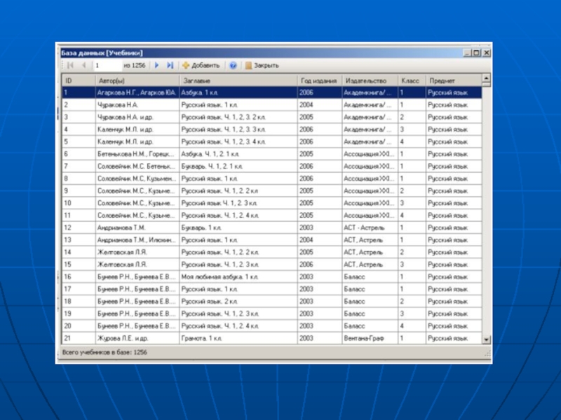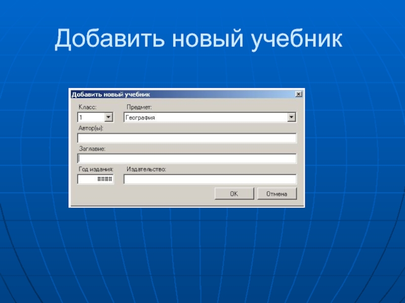 Слайд 8Ввод информации об учебниках и преподавателях начальной школы
