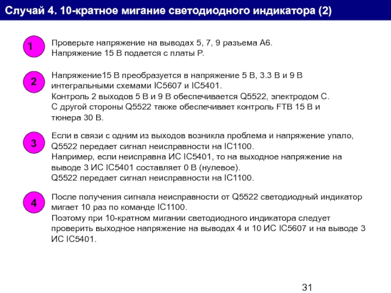 После получения сигнала неисправности от Q5522 светодиодный индикатор мигает 10 раз по команде IC1100.