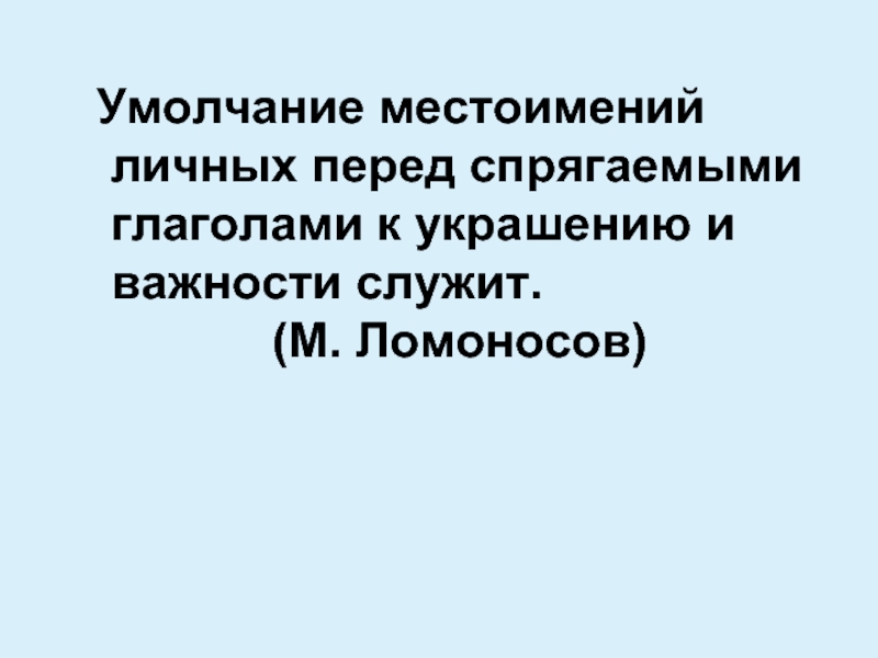 Слайд 9 Умолчание местоимений личных перед спрягаемыми глаголами к украшению и важности служит.