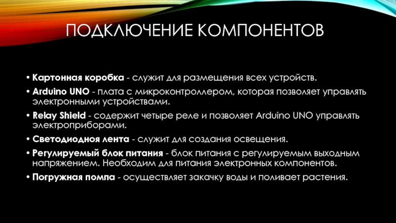 Слайд 12ПОДКЛЮЧЕНИЕ КОМПОНЕНТОВ