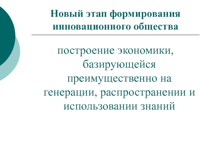 построение экономики, базирующейся преимущественно на генерации, распространении
