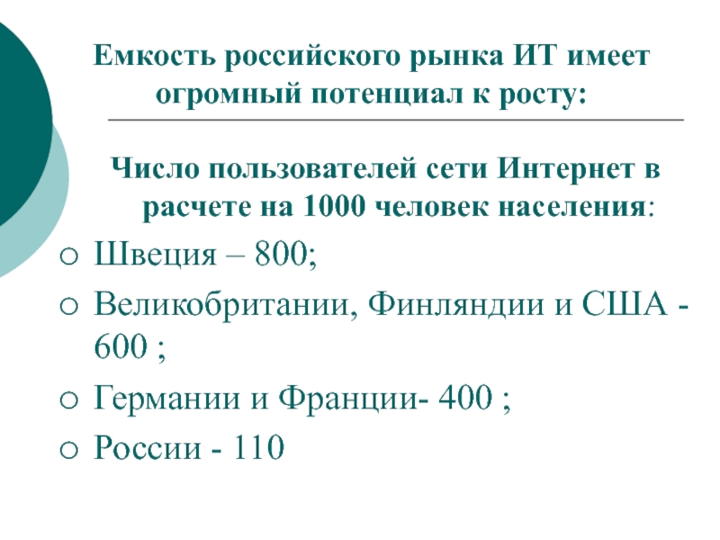 Слайд 14Емкость российского рынка ИТ имеет огромный потенциал к росту: