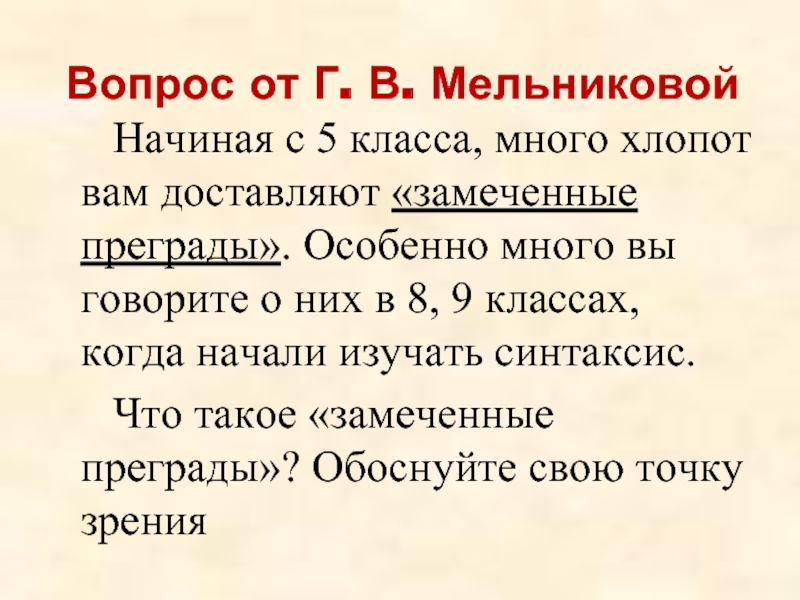доставляют «замеченные преграды». Особенно много вы говорите о них в 8, 9 классах, когда начали изучать синтаксис.