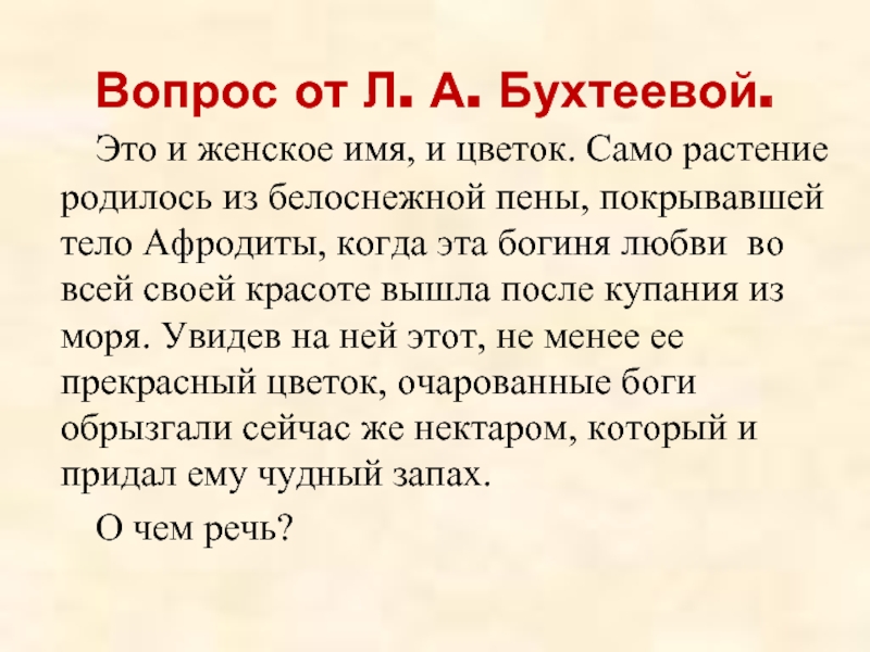 Слайд 11Вопрос от Л. А. Бухтеевой