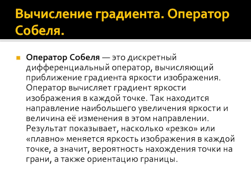Оператор Собеля — это дискретный дифференциальный оператор, вычисляющий приближение