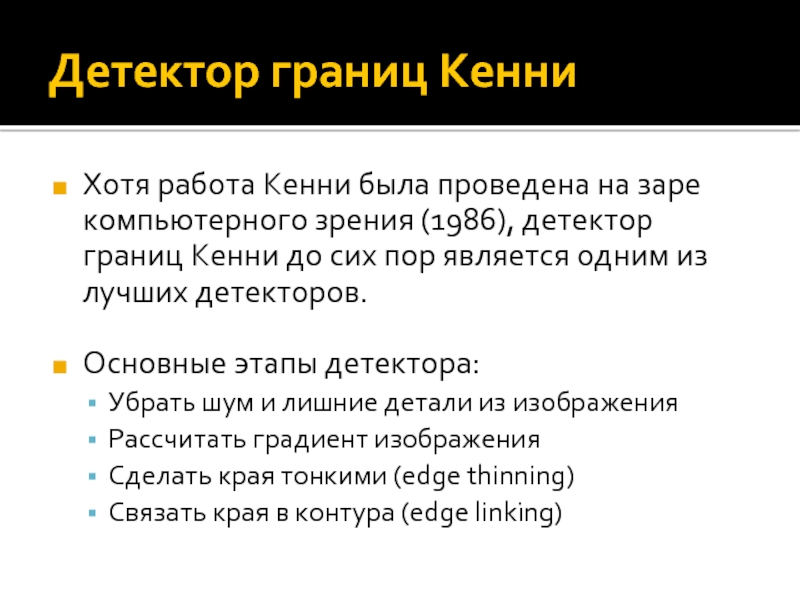 (1986), детектор границ Кенни до сих пор является одним из лучших детекторов.