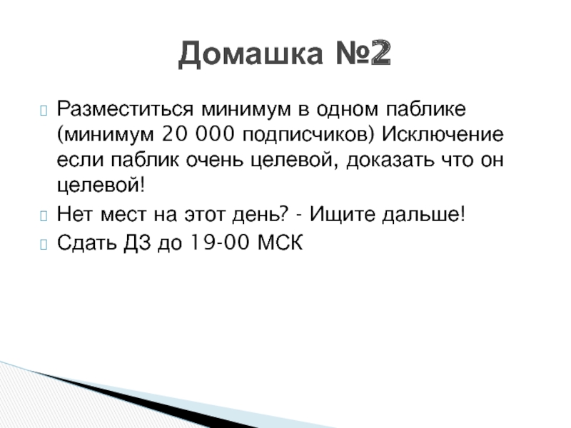 Разместиться минимум в одном паблике (минимум 20 000 подписчиков) Исключение