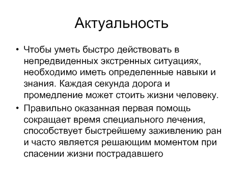 определенные навыки и знания. Каждая секунда дорога и промедление может стоить жизни человеку.
