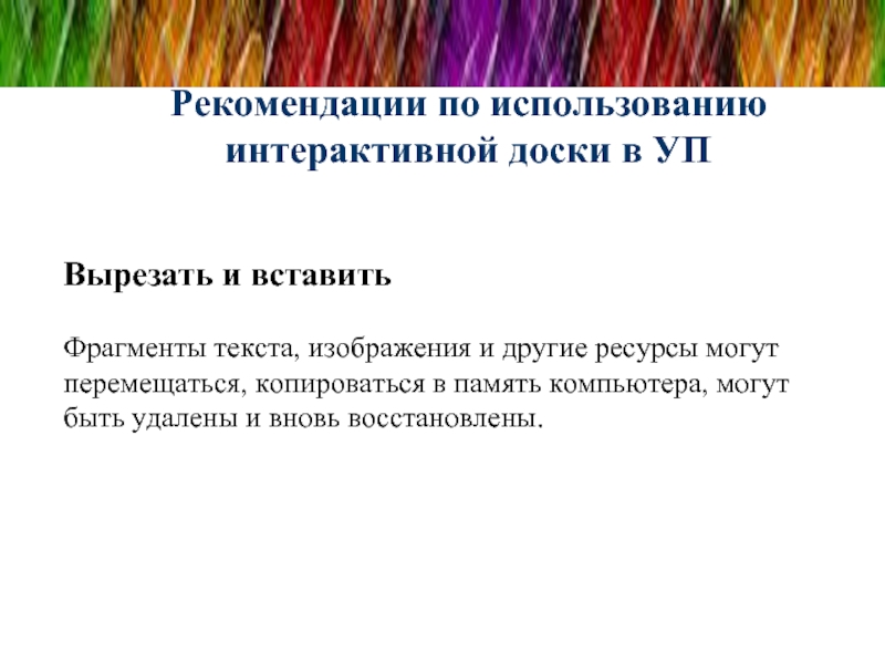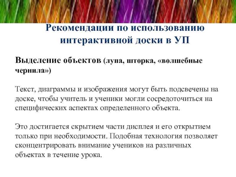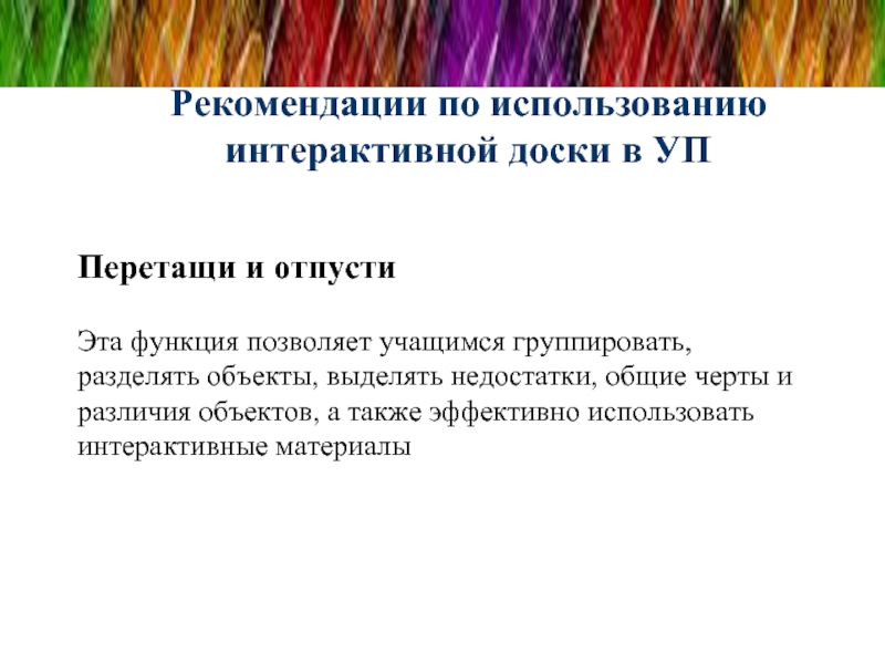 Слайд 10Рекомендации по использованию интерактивной доски в УП