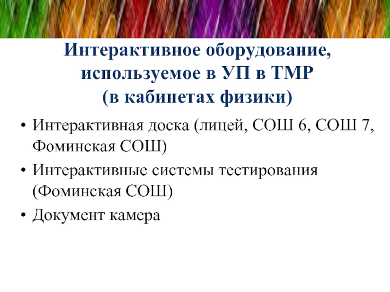 Слайд 6Интерактивное оборудование, используемое в УП в ТМР
