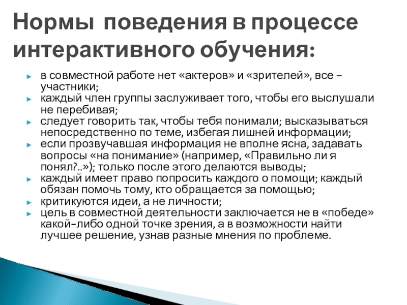 Нормы поведения в процессе интерактивного обучения: