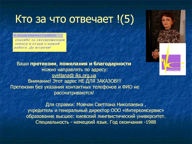 Претензии без указания контактных телефонов и ФИО не рассматриваются!