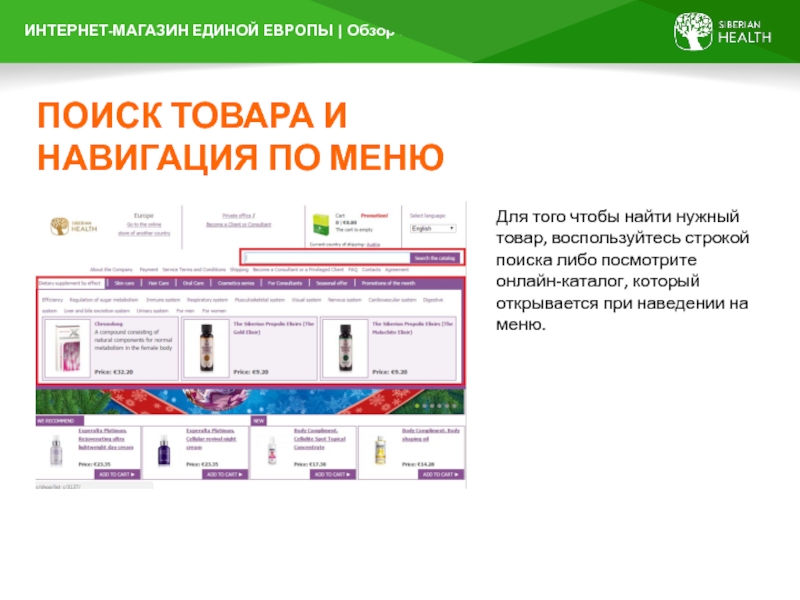 Слайд 8ПОИСК ТОВАРА И НАВИГАЦИЯ ПО МЕНЮ