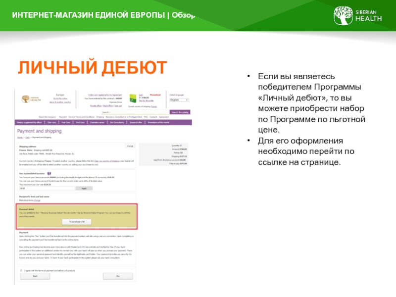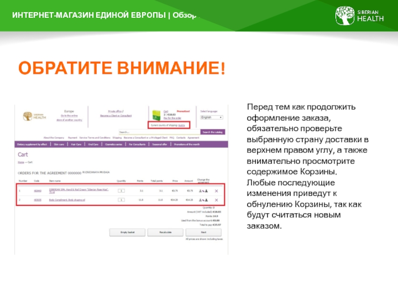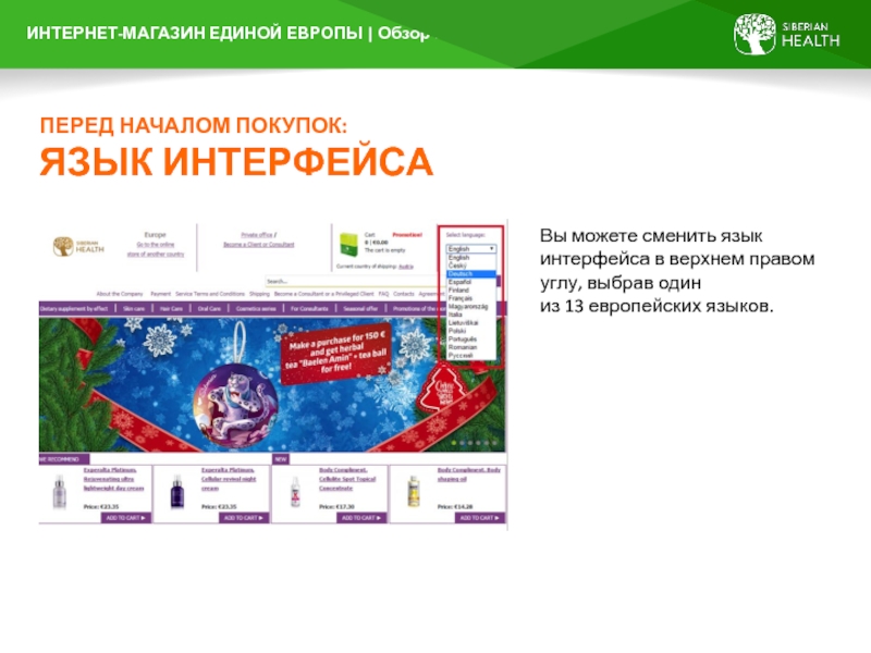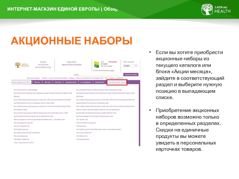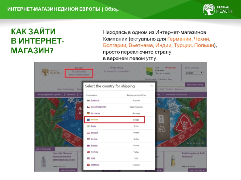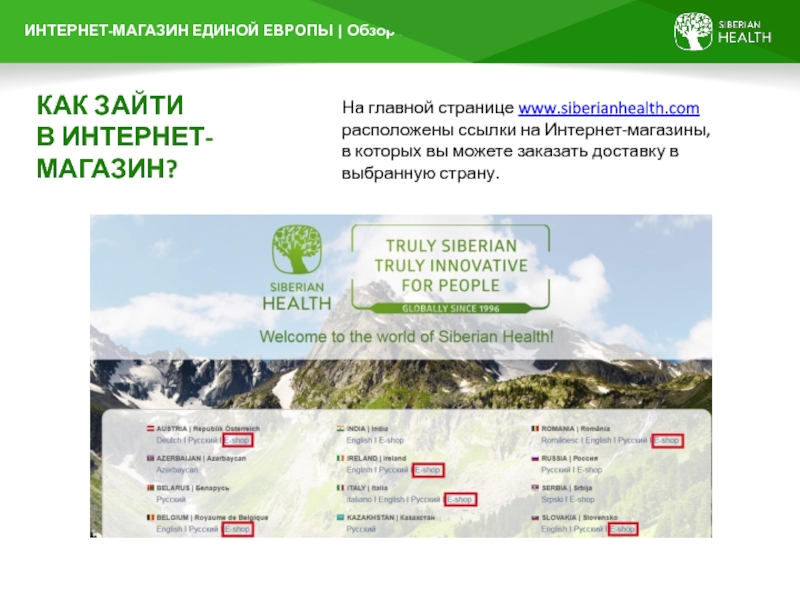 На главной странице www.siberianhealth.com расположены ссылки на Интернет-магазины,