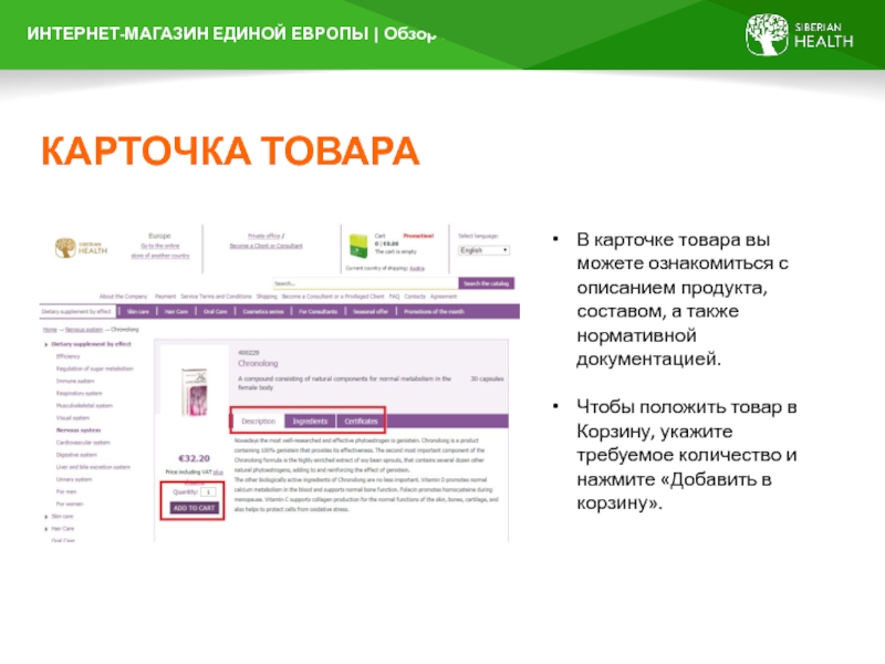 В карточке товара вы можете ознакомиться с описанием продукта, составом,