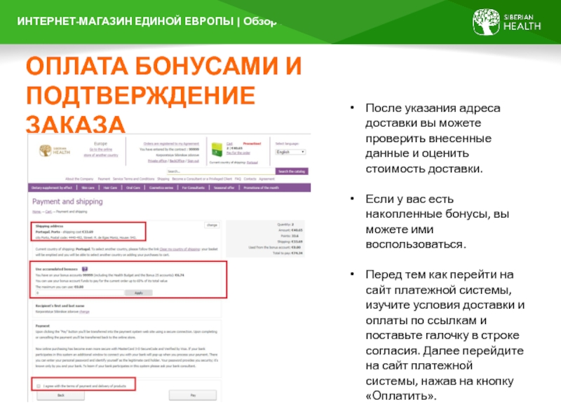 Слайд 16ОПЛАТА БОНУСАМИ И ПОДТВЕРЖДЕНИЕ ЗАКАЗА