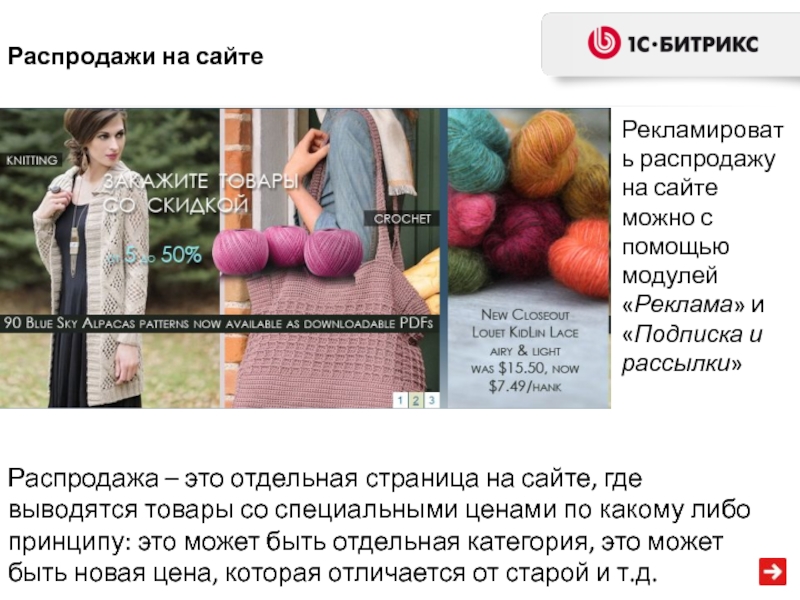 Рекламировать распродажу на сайте можно с помощью модулей «Реклама» и «Подписка и рассылки»