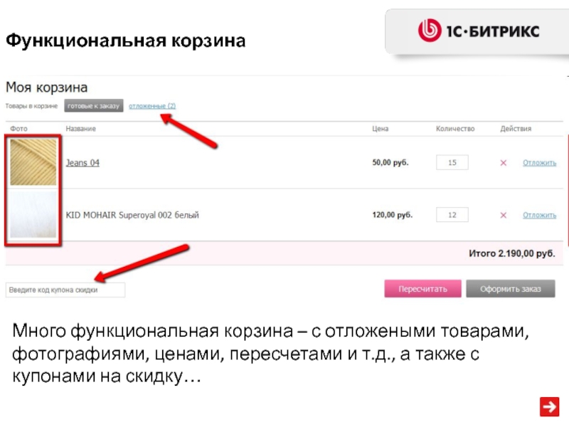 Много функциональная корзина – с отложеными товарами, фотографиями, ценами, пересчетами