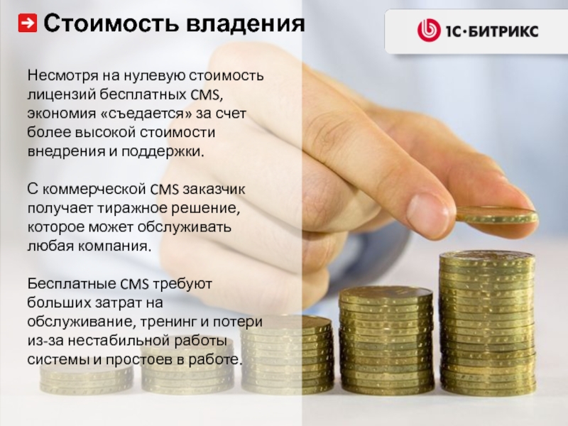 Бесплатные CMS требуют больших затрат на обслуживание, тренинг и потери из-за нестабильной работы системы и простоев в работе.