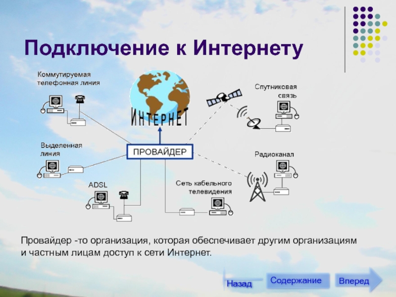 Интернет является одноранговой сетью, т.е. все компьютеры в сети равноправны, и любой компьютер можно подключить к любому другому компьютеру. Т.о., любой компьютер, подключенный к сети, может предлагать свои услуги любому другому.