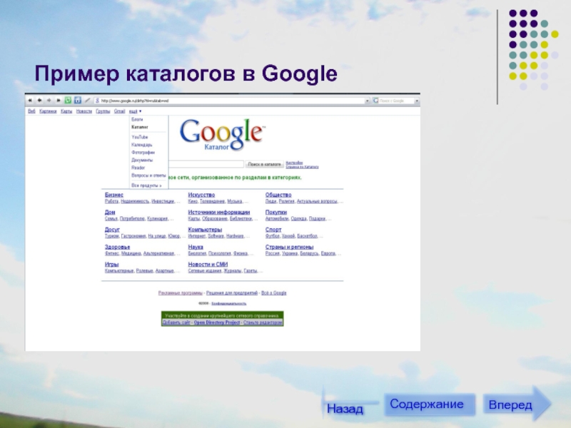 Если щелкнуть по названию темы, то откроются подтемы (рубрики). При дальнейшем движении вглубь будут открываться следующие уровни (подрубрики), и в итоге откроется список ресурсов (сайтов) выбранной тематики.