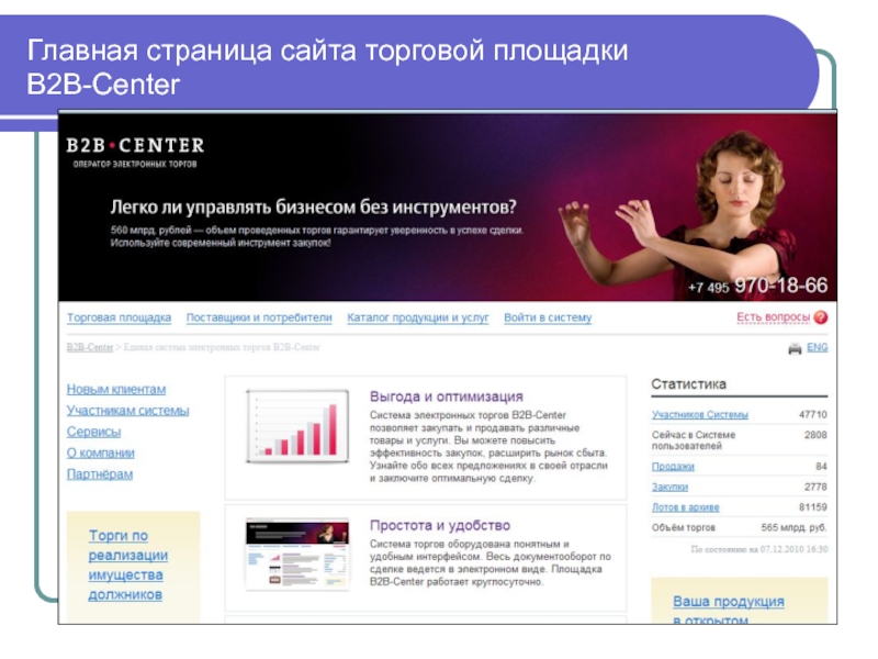 Слайд 62Главная страница сайта торговой площадки В2В-Center