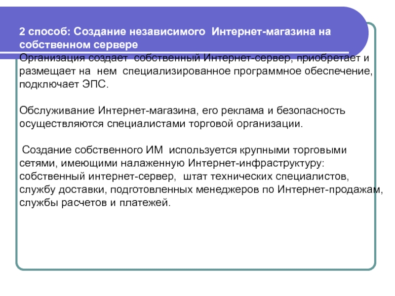 Слайд 592 способ: Создание независимого Интернет-магазина на собственном сервере