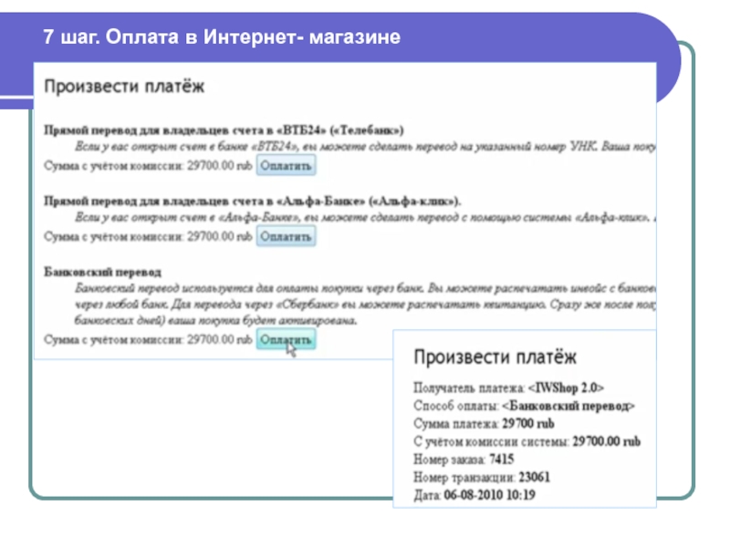 Специалисты торгового ряда предоставляют готовое программное обеспечение для работы Интернет-магазина, подключают к нему ЭПС, обслуживают программно-технические средства, проводят рекламу торгового ряда.