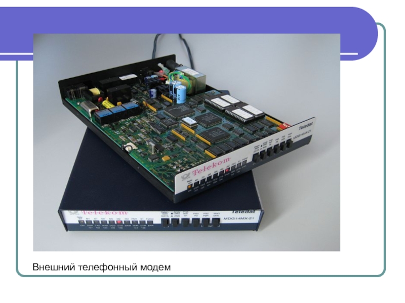 Слайд 12 Модемы - внешние устройства, которые применяются для связи компьютеров в сети