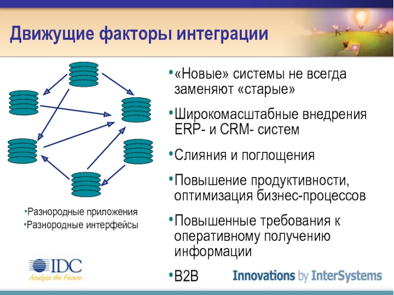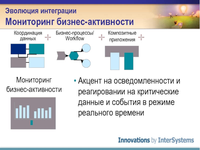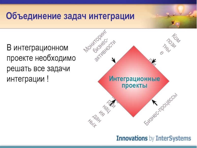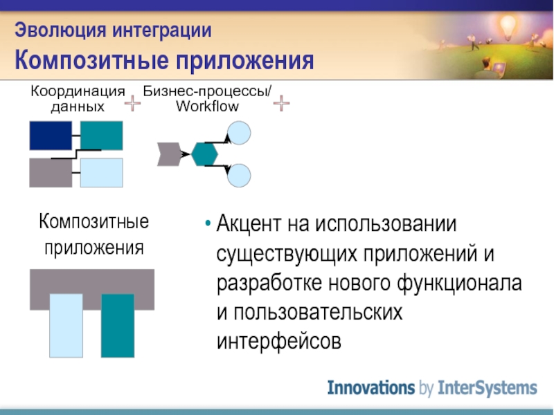 бизнес решений путем комбинирования функциональности существующих заказных приложений предприятия, тиражируемых систем и новых приложений на основе общей платформы интеграции и разработки приложений