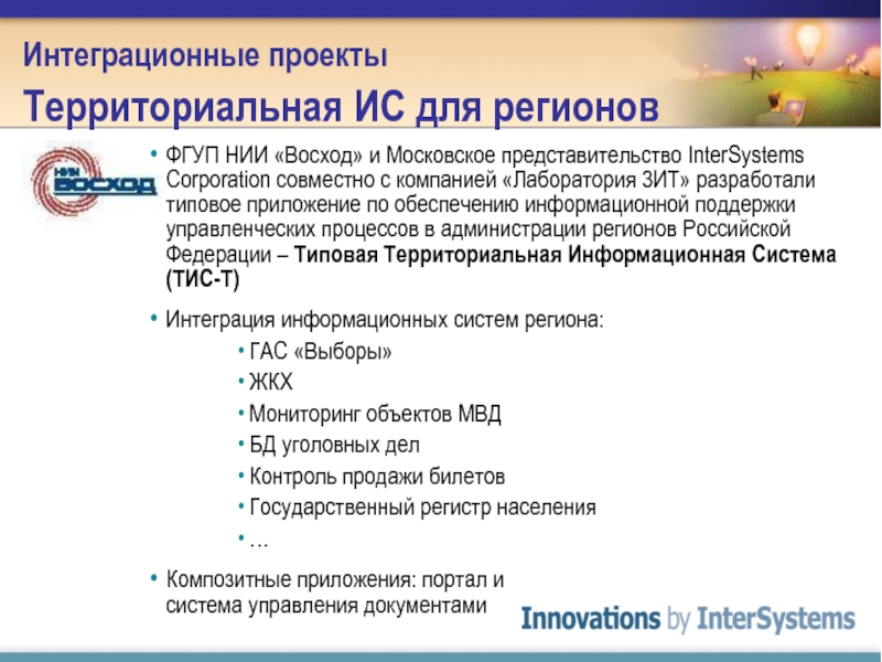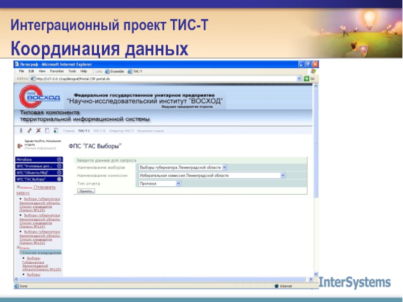 InterSystems Corporation совместно с компанией «Лаборатория 3ИТ» разработали типовое приложение по обеспечению информационной поддержки управленческих процессов в администрации регионов Российской Федерации – Типовая Территориальная Информационная Система (ТИС-Т)