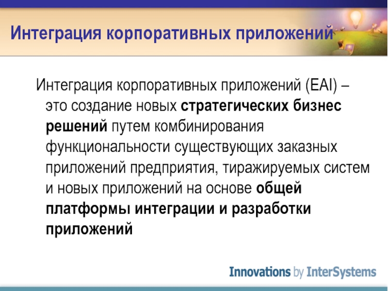 Интеграция корпоративных приложений (EAI) – это создание новых стратегических