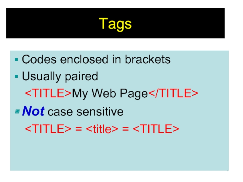 “Normal text” surrounded by bracketed tags that tell browsers how to