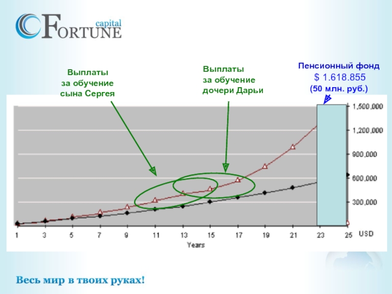3. Создать Капитал к 2035 году для получения пенсии (% от капитала) в размере $ 2.000 в месяц