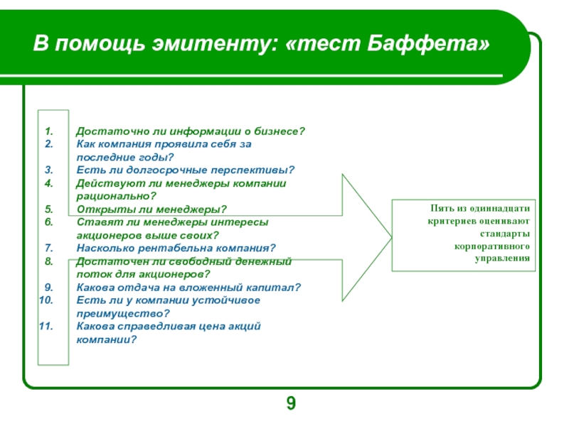 Пять из одиннадцати критериев оценивают стандарты корпоративного управления