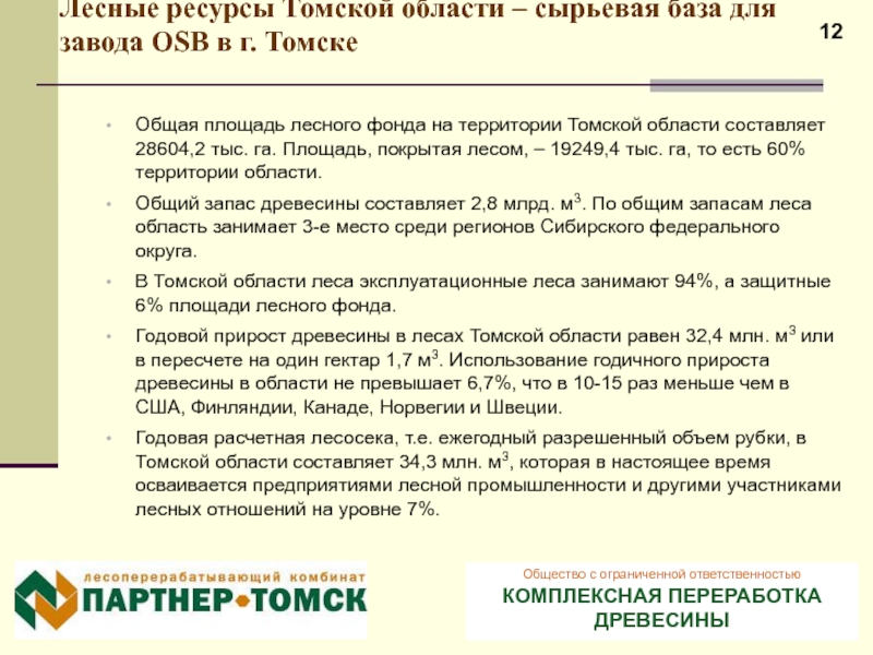 Лесоресурсный потенциал Томской области представляет собой реальную основу для полноценного функционирования и развития предприятий по глубокой переработке древесины, таких как производство плит MDF и OSB.