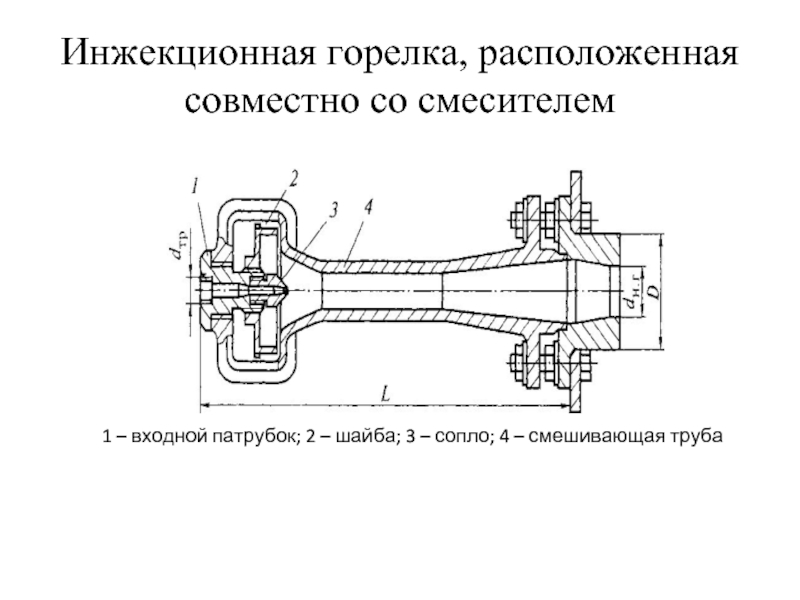 Слайд 2Инжекционная горелка, расположенная совместно со смесителем