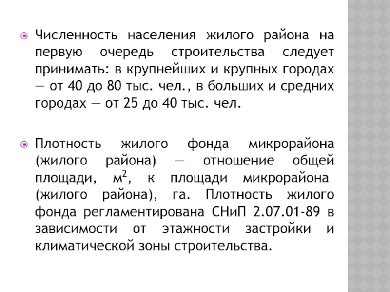 Слайд 13Численность населения жилого района на первую очередь строительства следует принимать: в