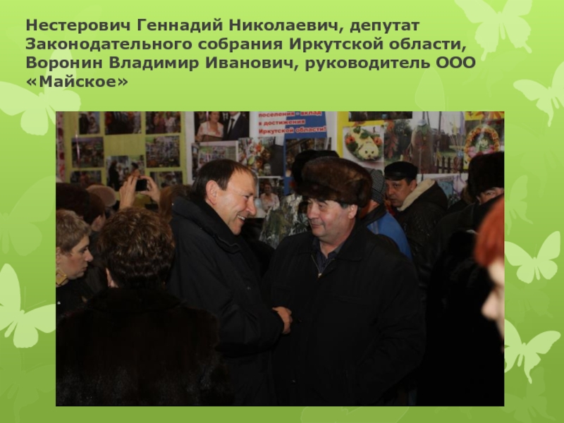 Слайд 38Нестерович Геннадий Николаевич, депутат Законодательного собрания Иркутской области, Воронин Владимир Иванович,