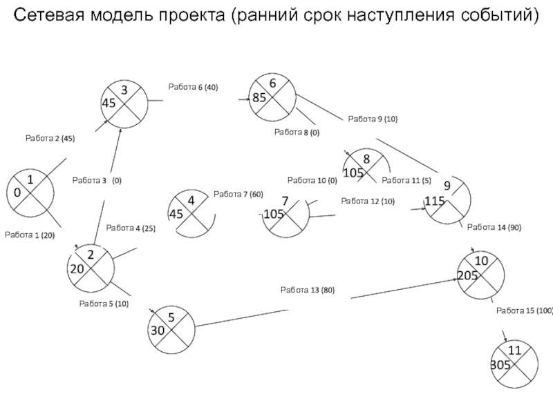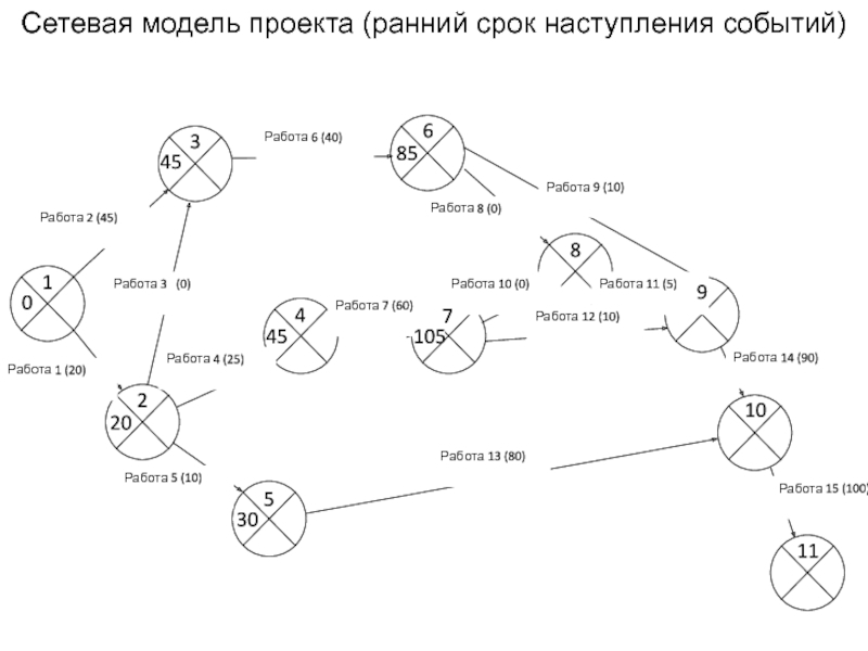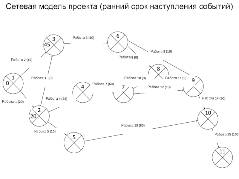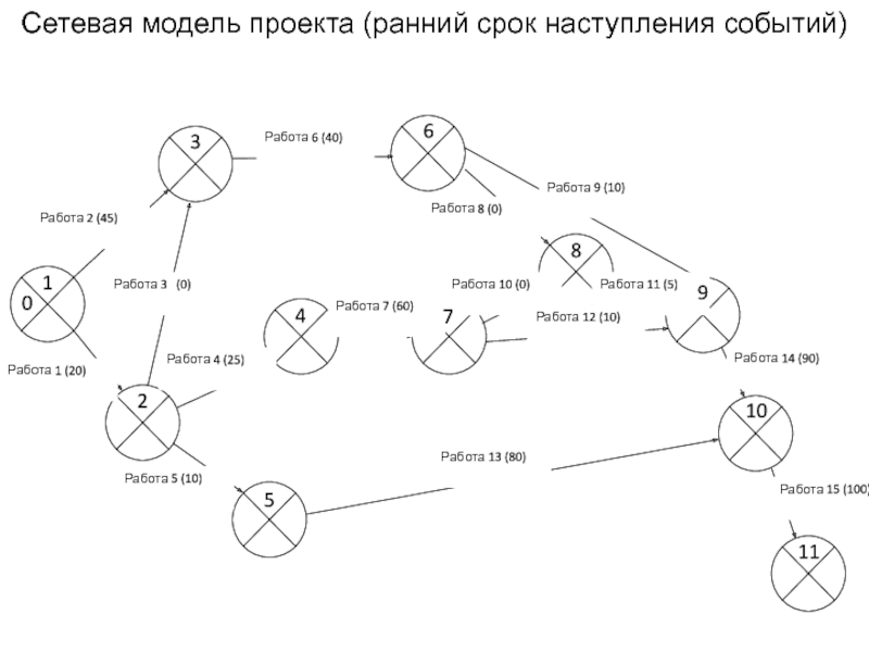 Слайд 11Сетевая модель проекта (ранний срок наступления событий)
