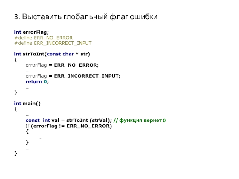 Слайд 33. Выставить глобальный флаг ошибки