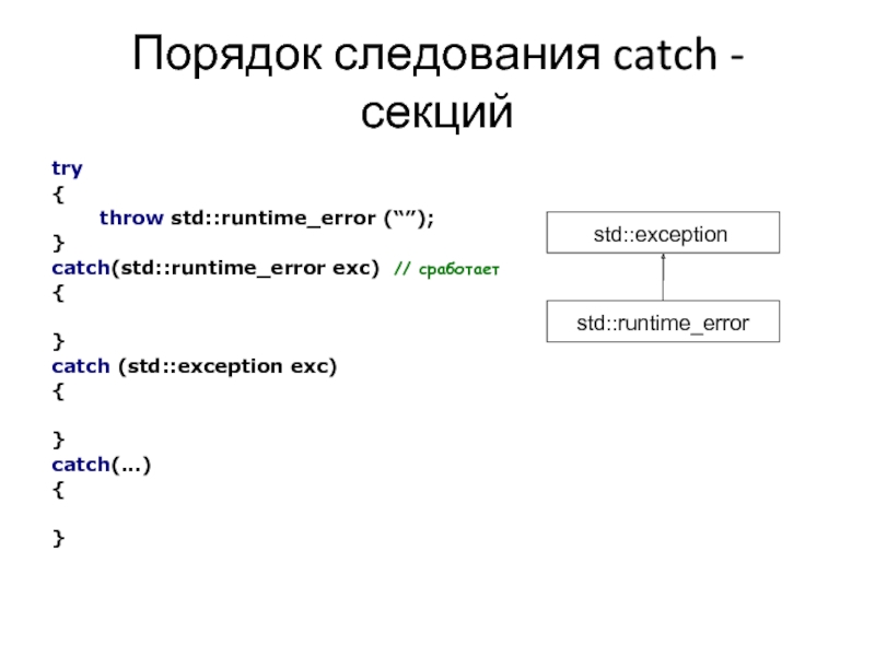 Слайд 12Порядок следования catch - секций