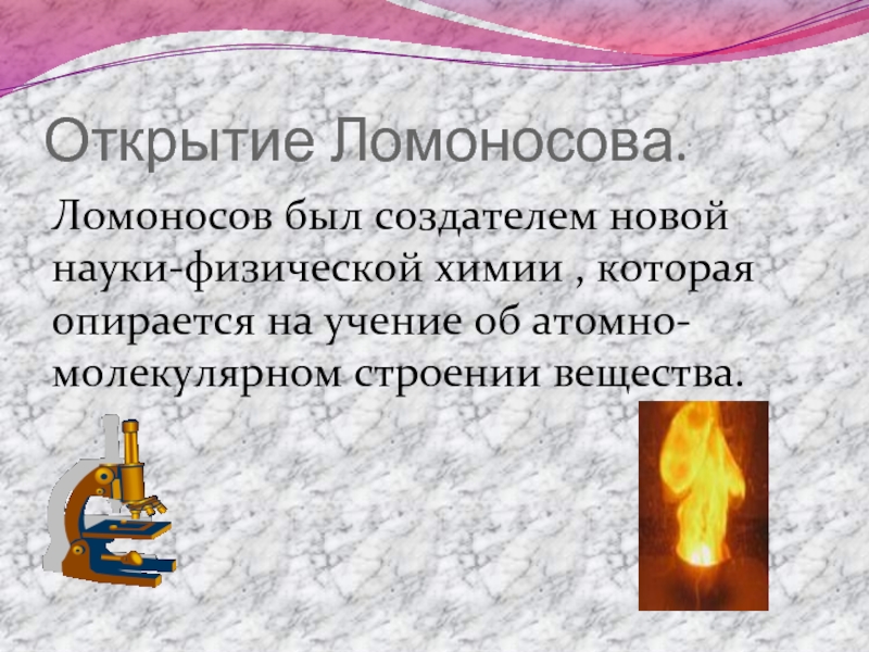 Слайд 4 М.В.Ломоносовым были заложены основы физической химии. Он попытался