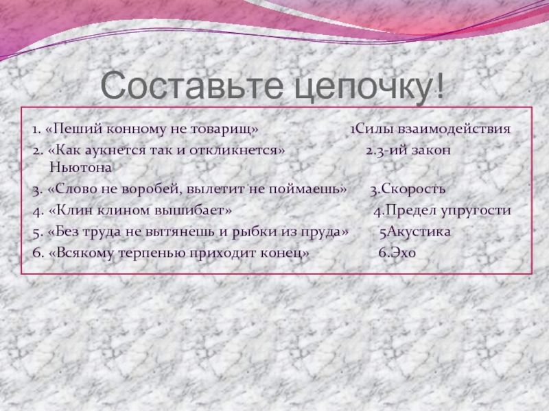 6. «Всякому терпенью приходит конец» 6.Эхо