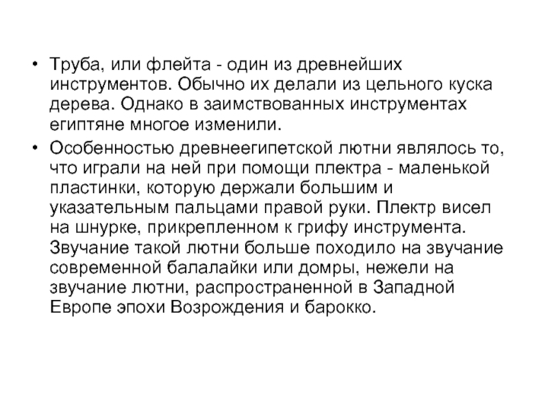 Труба, или флейта - один из древнейших инструментов. Обычно их делали