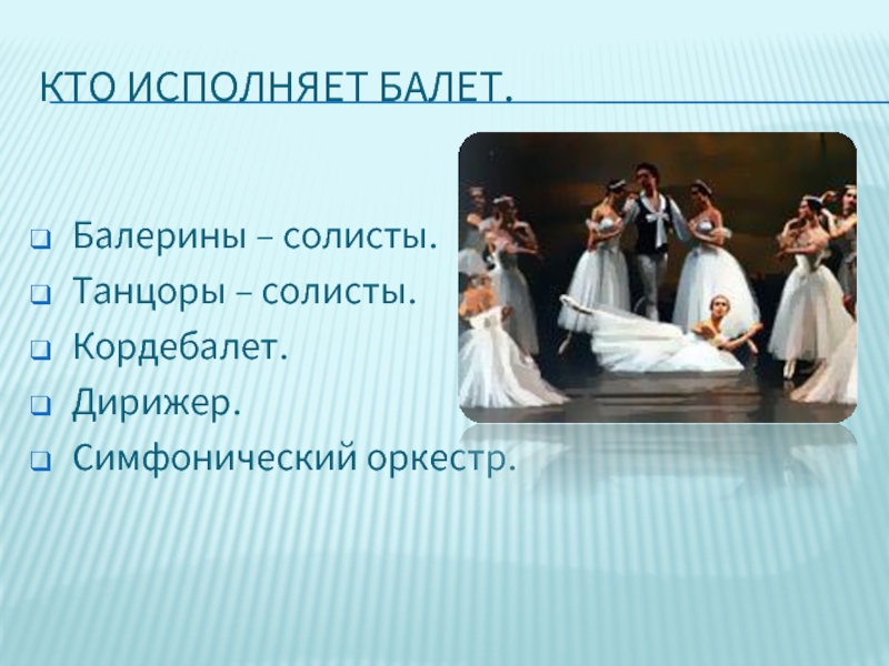 Слайд 8КТО ИСПОЛНЯЕТ БАЛЕТ.