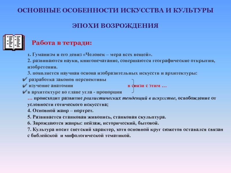 ОСНОВНЫЕ ОСОБЕННОСТИ ИСКУССТВА И КУЛЬТУРЫ