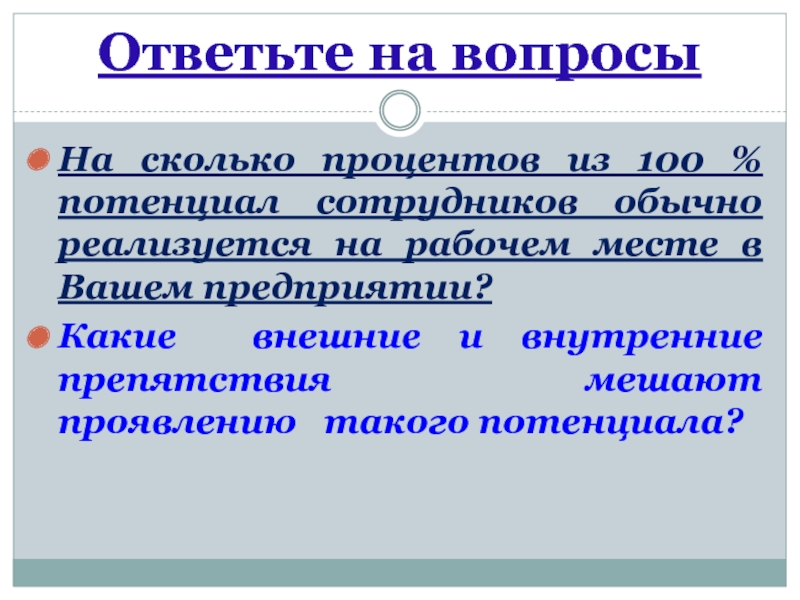 На сколько процентов из 100 % потенциал сотрудников обычно