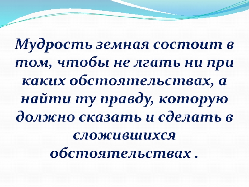 Слайд 27Мудрость земная состоит в том, чтобы не лгать ни при каких