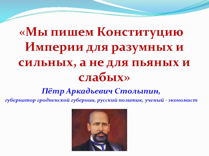 Слайд 19«Мы пишем Конституцию Империи для разумных и сильных, а не для